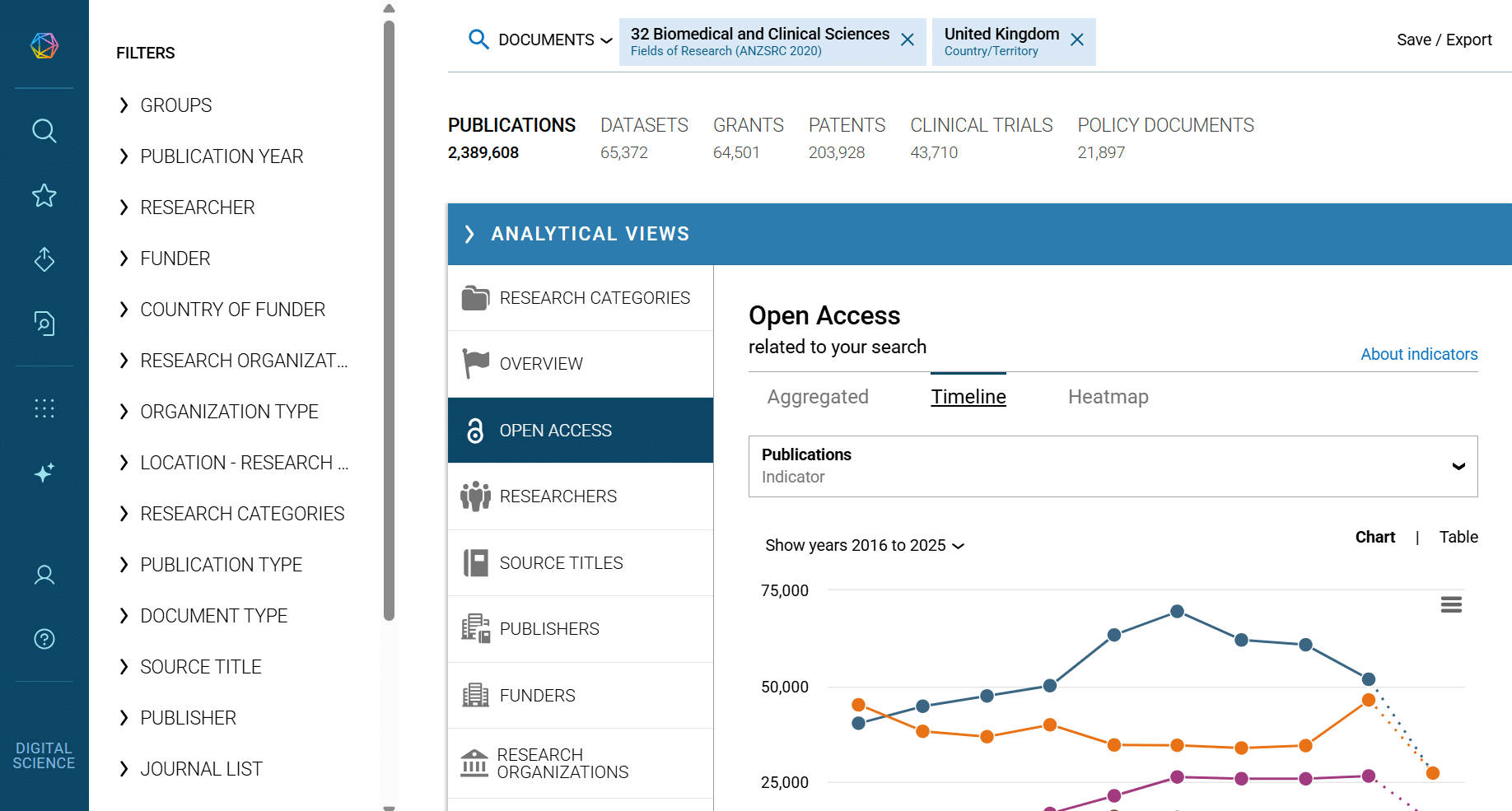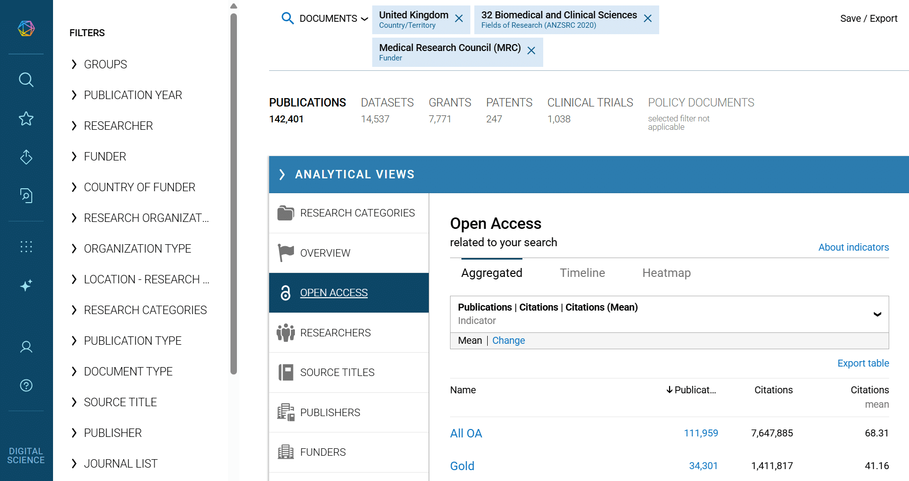 - See how much money a funder is awarding by subject area and the resulting impact looking at OA vs closed