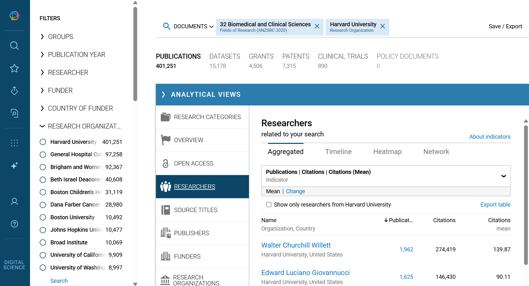 In addition, access to researcher data and publication history can help you quantify the number of researchers at institutions or via geography, as well as specifically in your publications and/or competitive titles.