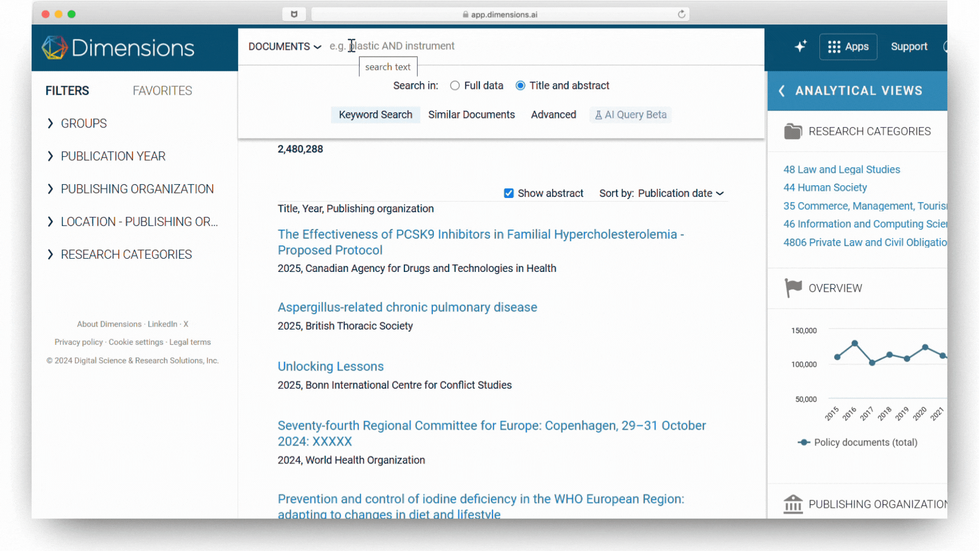 Explore connections across the full research landscape, from over 146 million publications to grants, clinical trials, patents, datasets and policy documents. It’s a breadth and depth of data that you can’t find anywhere else.