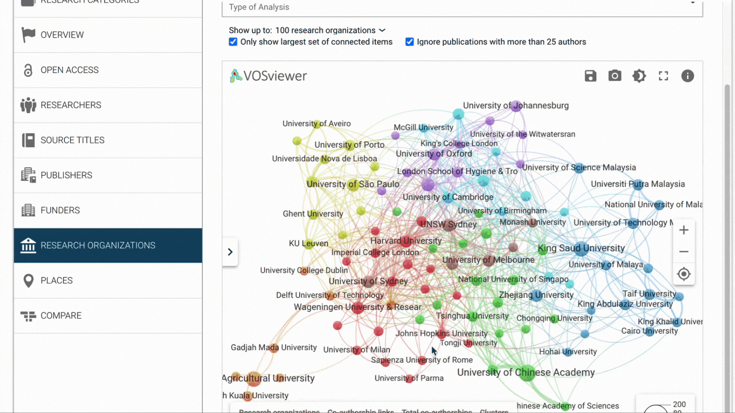 You don’t need to be a data expert to create quick powerful visualizations or dashboards across research organizations, source titles and countries, providing deeper insights that help you uncover previously unrealized opportunities at a glance.