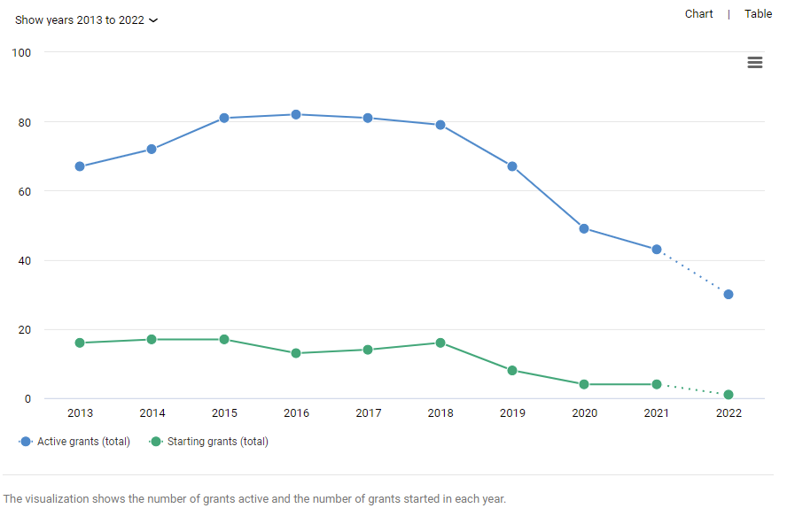 You can use Dimensions to easily find collaborations based on country by research organization with Dimensions. To illustrate, the below illustration shows the number of active grants between Harvard University and funders in Australia.