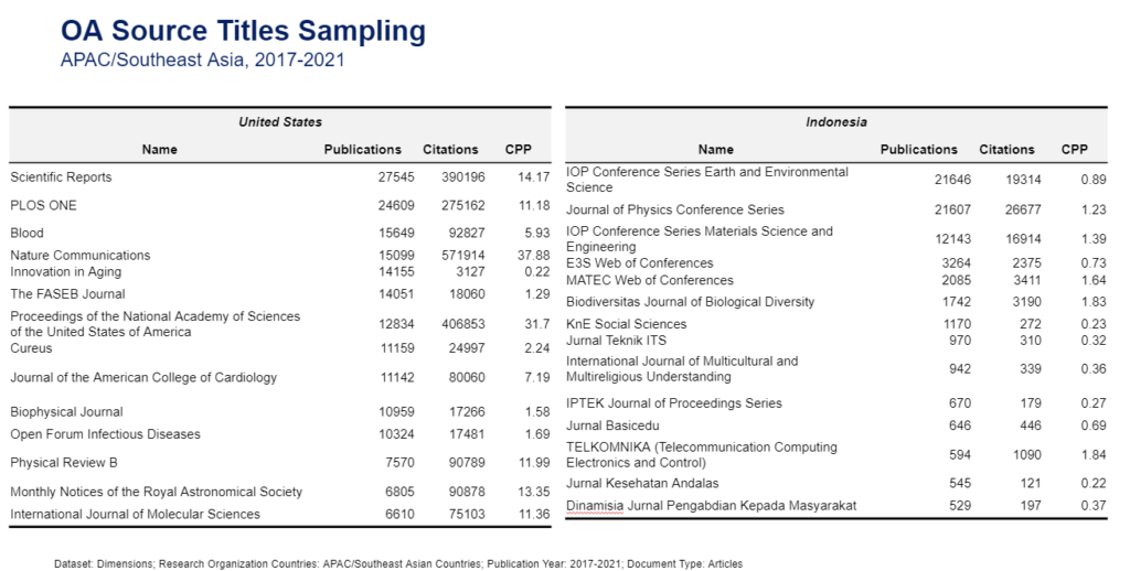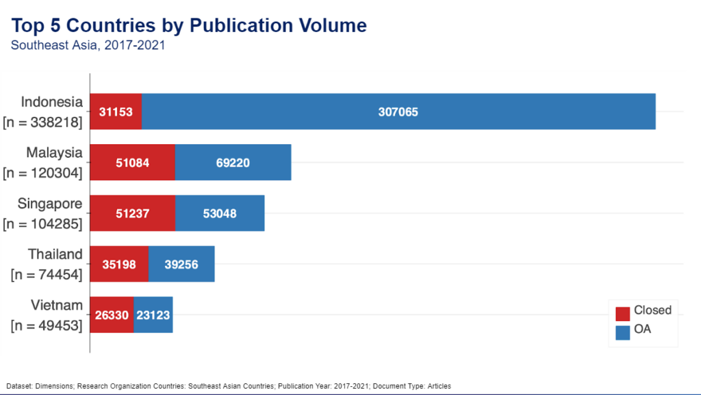Indonesia is by far the leading country in terms of publication quantity and is driving the growth of OA in this region.