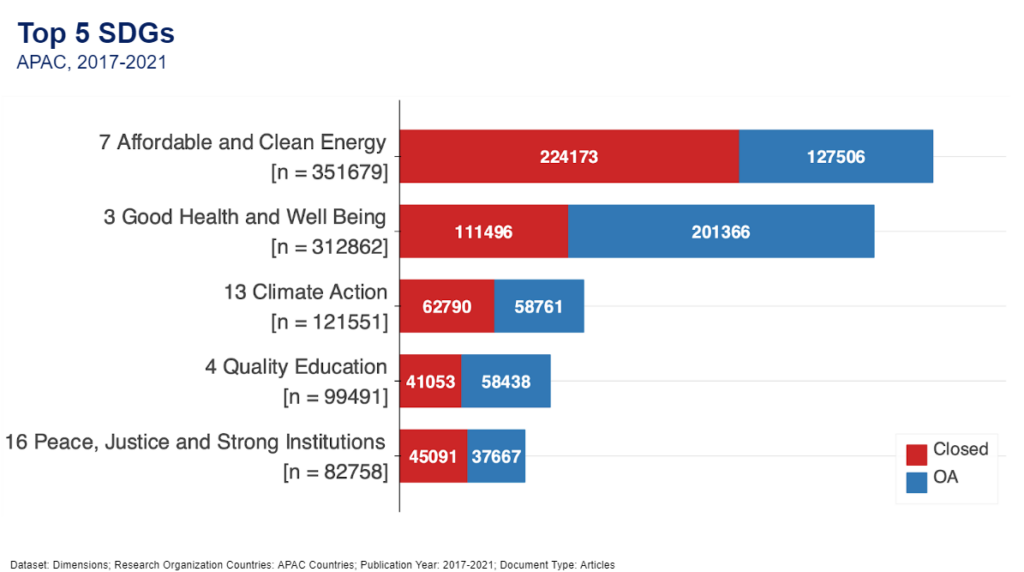 AS: Analyzing research output related to the SDGs across APAC countries, we have found that their general focus for the past five years more or less mirrors our own.