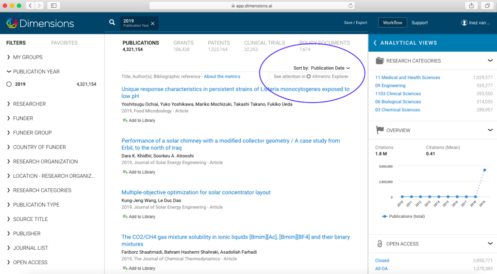 The integration with the Altmetric Explorer will take your searches to another level. You will be able to search across more than 100 million publications within the Dimensions platform and seamlessly analyze the online attention for your search query in the Altmetric Explorer without breaking your workflow.