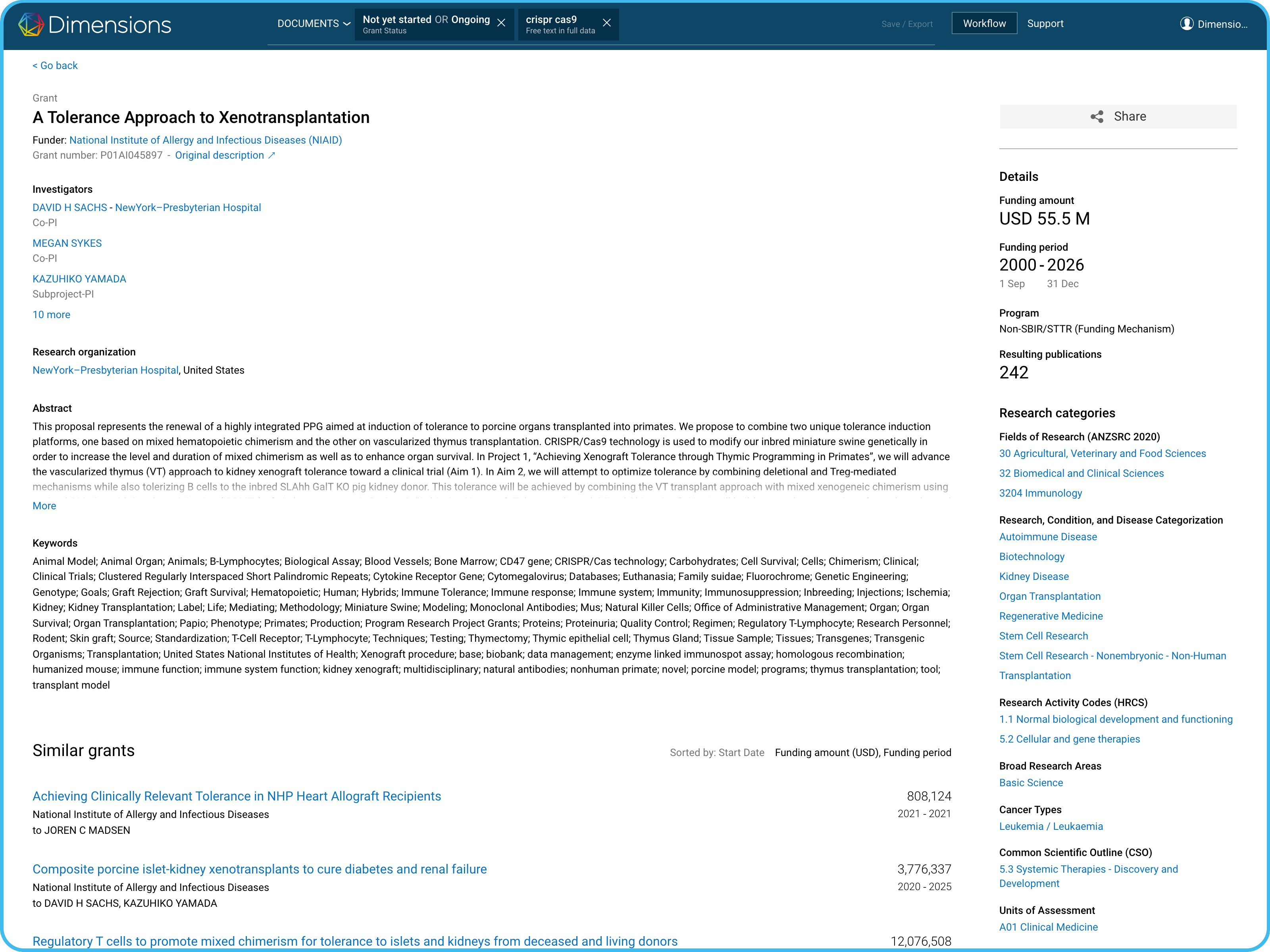 Explore funding trends, grant portfolios, and the profiles of research organizations worldwide for strategic benchmarking.