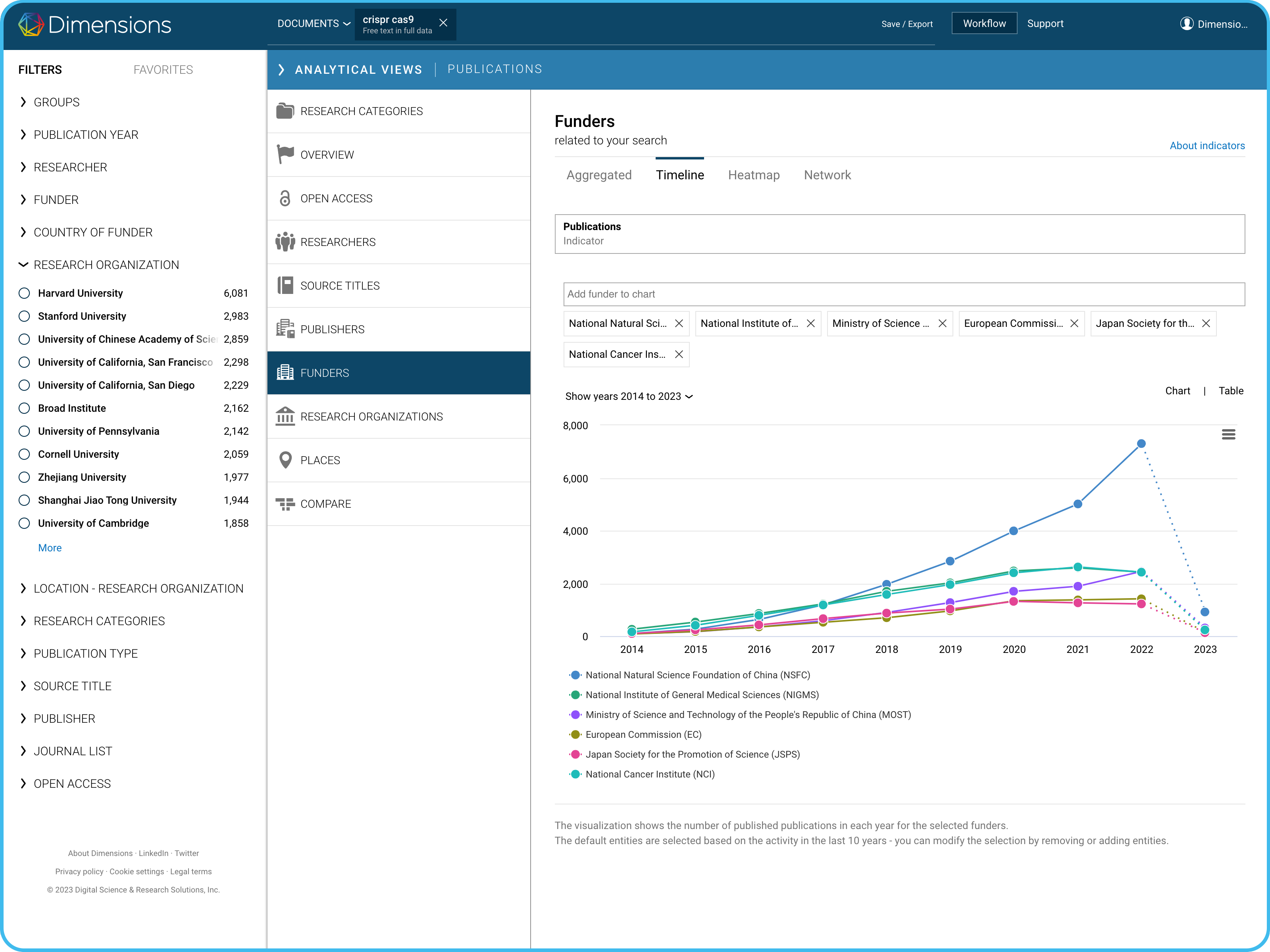 Users can apply advanced filters and customize their searches according to date, discipline, region and research output to get the most relevant results. Whether you’re looking for historical medical discoveries, emerging trends in aerospace or the evolution of robotics, Dimensions Analytics offers practical, actionable insights.
