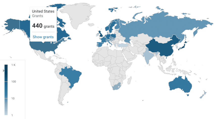 The Dimensions grants database includes information from more than $1.5 trillion worth of funded grants and can provide valuable insights into the global trends of Car-T research investment including the number of grants awarded, average lifespan and the average value of funding. An interactive geo-map reflects global distribution of grant awards and indicates more than $500 million has been awarded in the US in the past decade.