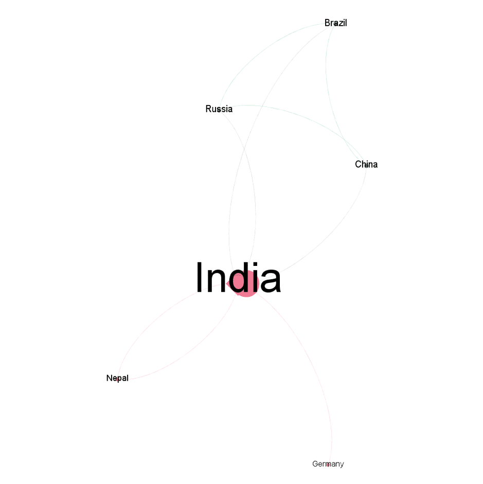 Unlike the other networks investigated in the BRICS countries, India has a less diverse, self-centered network, showing little international co-authorship. The data does not match with the scientific production of India, in particular in the field of space geotechnology. Particularly interesting as the country is considered one of the world’s major powers in the production and development of information technology, with strong political, social and administrative investments, defining it as a priority sector in the past 10 years, as discussed by Gupta and Dhawan.
