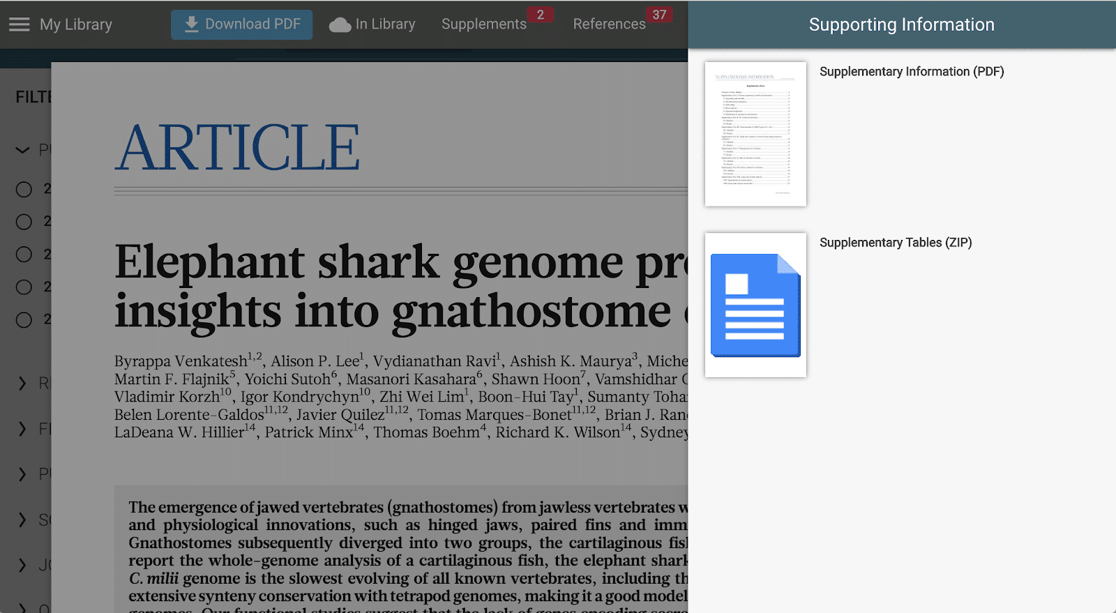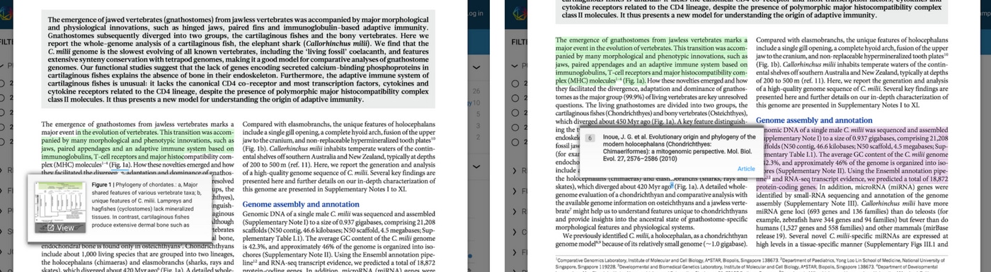 The challenge with standard PDF readers is that the PDF is a static object. Anytime you want to look at a reference *d* article, you are scrolling to the bottom of the paper, copying and pasting, opening a new tab, doing a search, and finally getting to the publisher page. If you then want to view supplement 4, you probably didn’t download that originally, so you need to start a new search, in a new tab, to find it. These are just two of the many instances that inspired ReadCube to build the Enhanced PDF – something that looks like a PDF in the browser, but connects to all the related materials you may need.