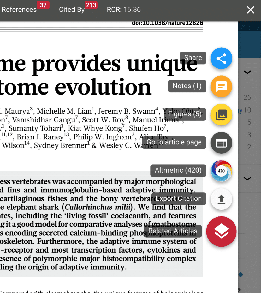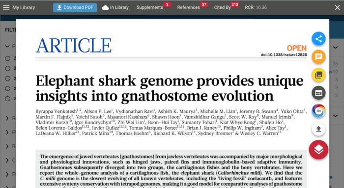 Dimensions was built as a community-driven tool designed to help researchers in all areas of the research lifecycle. Starting from the discovery stage, Dimensions utilizes Anywhere Access technology to deliver the text for Open Access articles and subscribed journal content (for all subscribed institutions.) After clicking the “View PDF” within seconds you have access to the full-text article in ReadCube’s Enhanced PDF viewer, bringing you a more interactive reading experience.