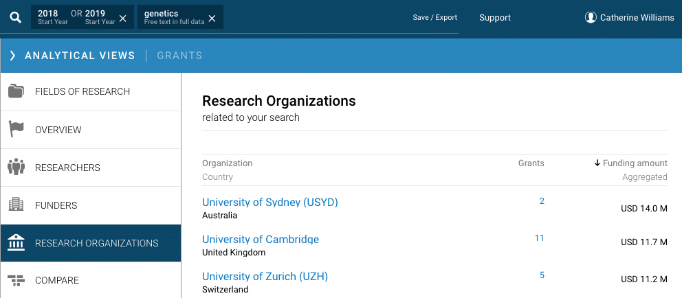 Dimensions enables you to explore these in a dynamic way. Within the platform, you can see what key funding key researchers in a discipline are receiving; identify which research areas are receiving a growing number of grants; track clinical trials at each stage, and predict tomorrow’s trends and hot topics.