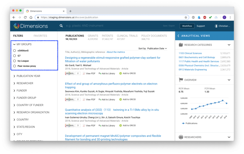 Today, thanks to your feedback, we are very pleased to report that we have invested significant time and effort in adding two new features which will specifically benefit Dimensions Analytics users to find relevant research, more efficiently.
