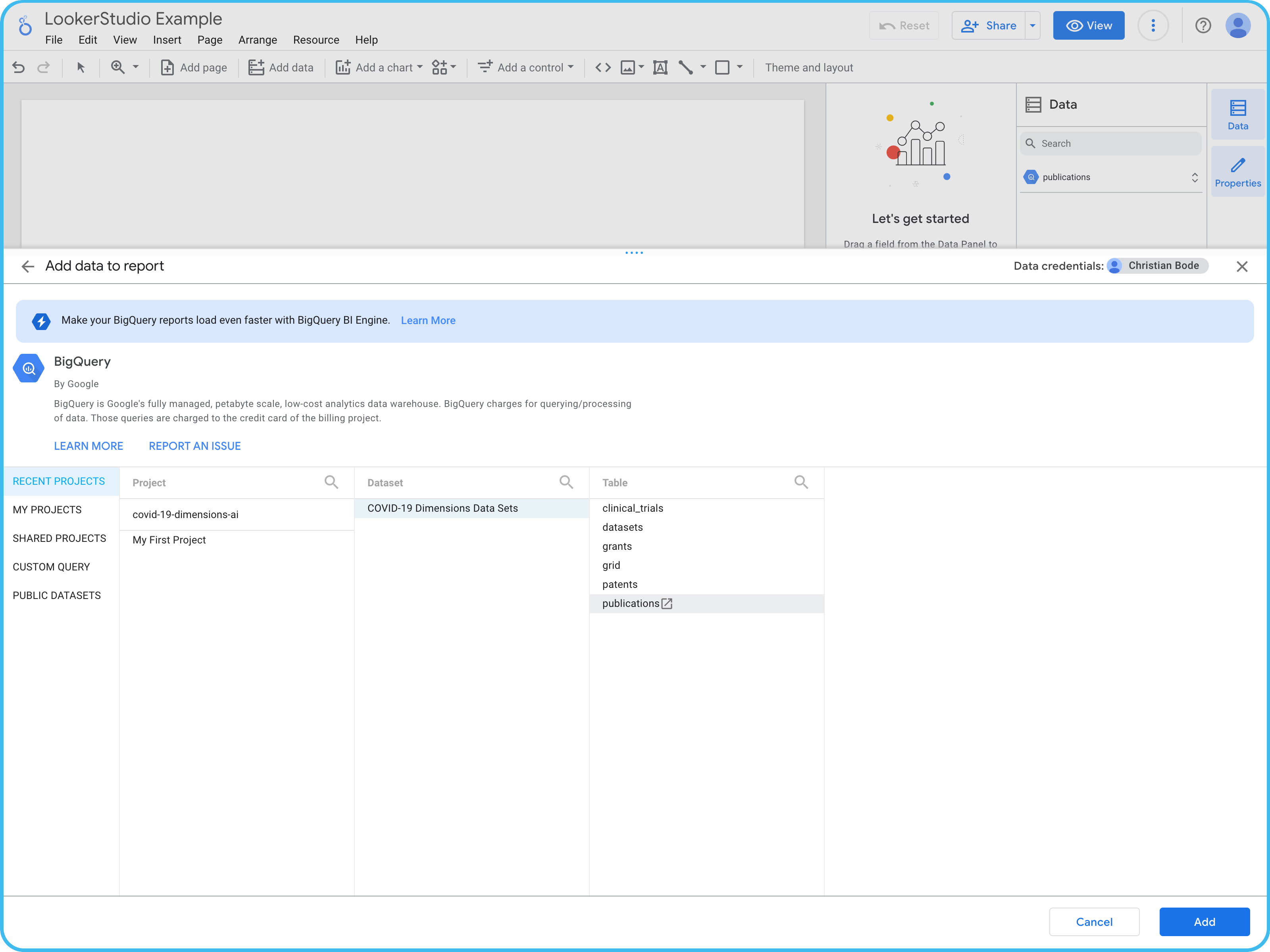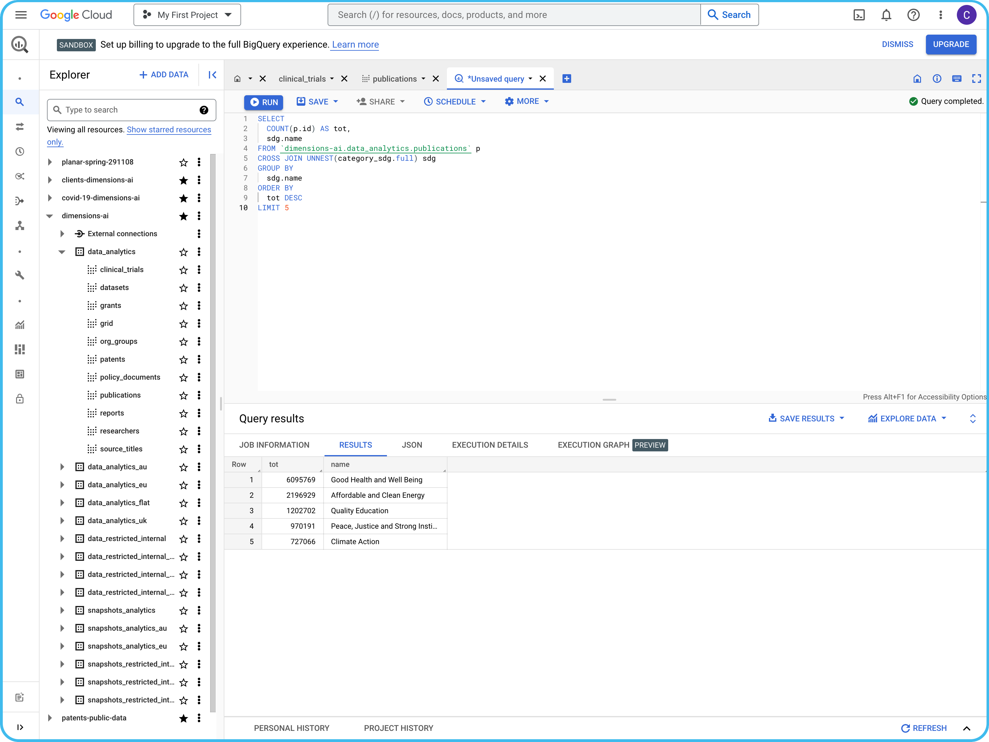 Dimensions on Google BigQuery (GBQ) offers a robust solution for combining your organization’s internal data with the expansive Dimensions dataset. It enables seamless integration with Business Intelligence tools and data visualization platforms to explore billions of data points in seconds. Whether you’re streamlining research workflows, uncovering hidden trends or making data-driven decisions, the Dimensions BigQuery analytics tool offers the speed and flexibility to extract actionable insights faster than ever.