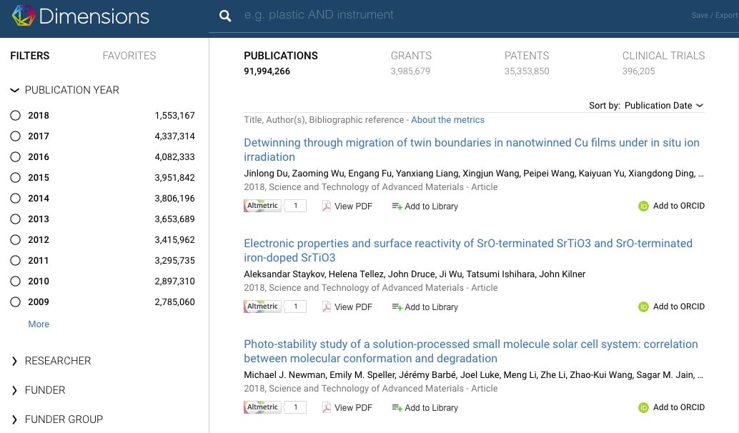 Dimensions offers free search and discovery for over 91 million publications, and is a reliable, structured source for researchers looking to explore the latest research and stay up to date with progress in their field.