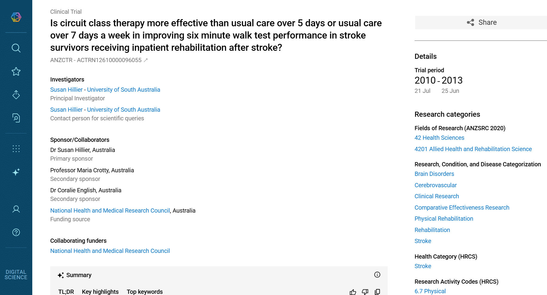 Continuing to follow the thread of funding, we can locate a clinical trial registry for the trial which launched with funding from the National Health and Medical Research Council (NHMRC).