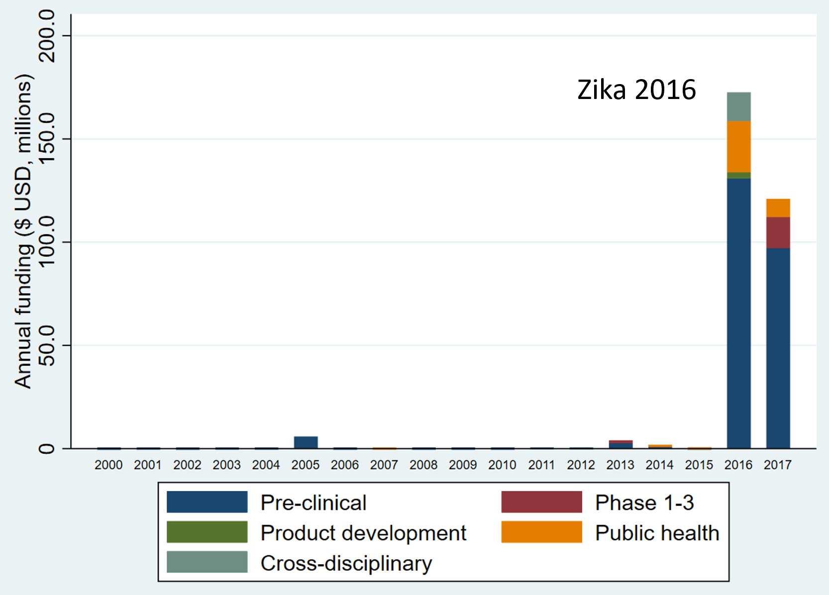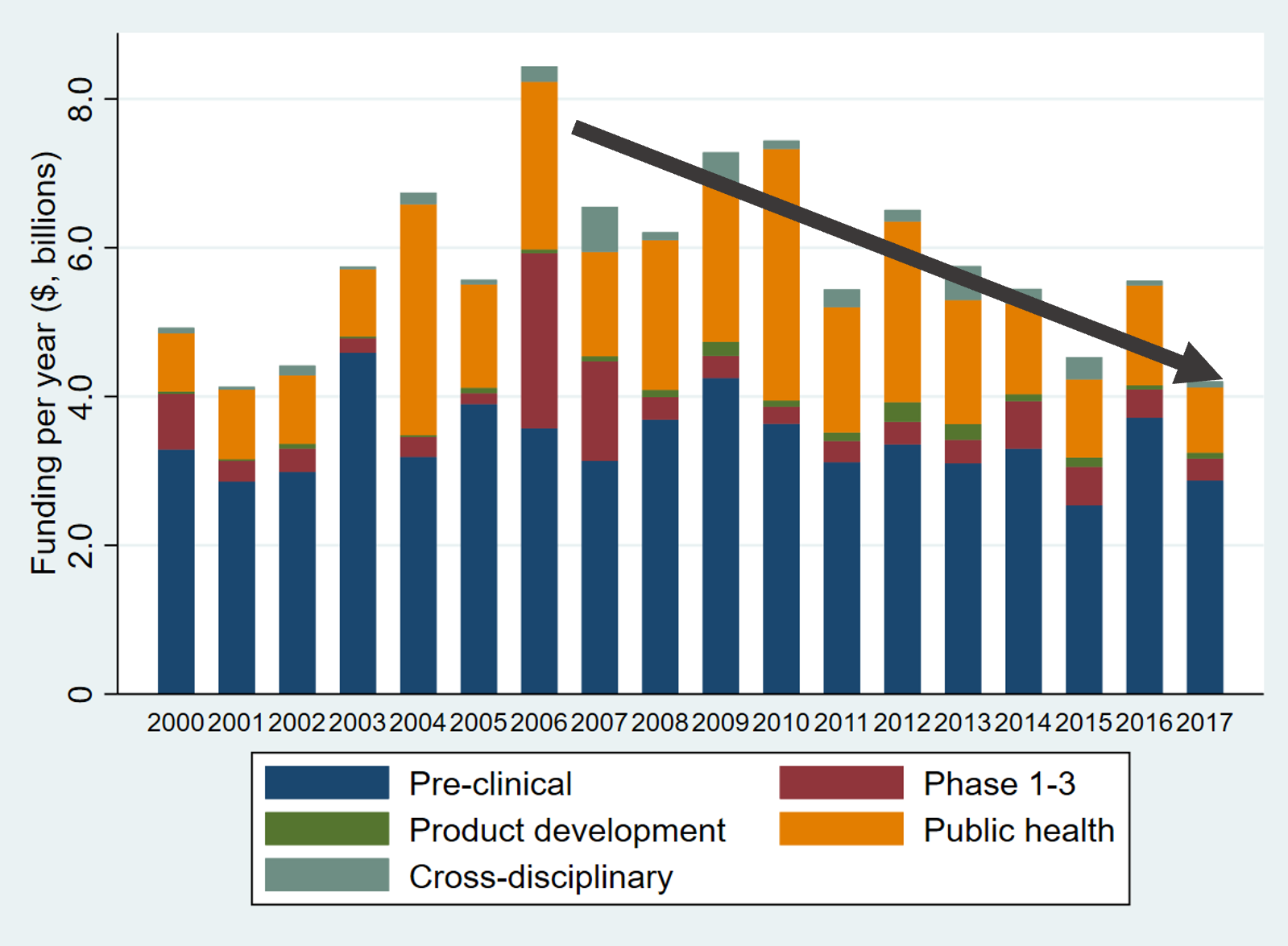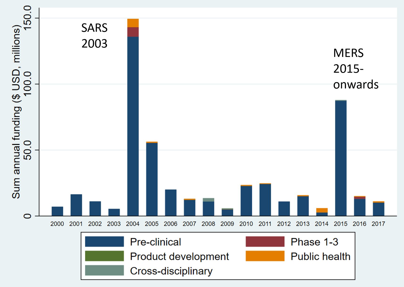 We showed that infectious disease research funding has been in decline since about 2006, despite the regular emerging infectious disease threats posed across the time period of our study. This includes the original SARS outbreak in Hong Kong, the Ebola outbreak in West Africa, and the emergence of the Zika virus in South America. The funding here also stopped as quickly as it started – reactive rather than proactive, and when the world moves on, so does the funding. It’s not the best approach to global health, and the COVID-19 pandemic has, alas, proven that.