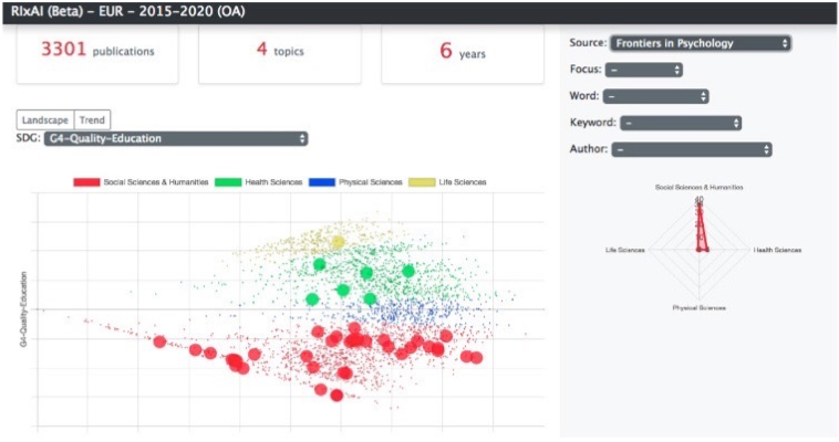 Features in Dimensions added further value to the project. Citation data and Altmetric scores give insight to the popularity of the published research. A built in SDG classifier allows EUR to compare results of their model with the approach used by Dimensions.