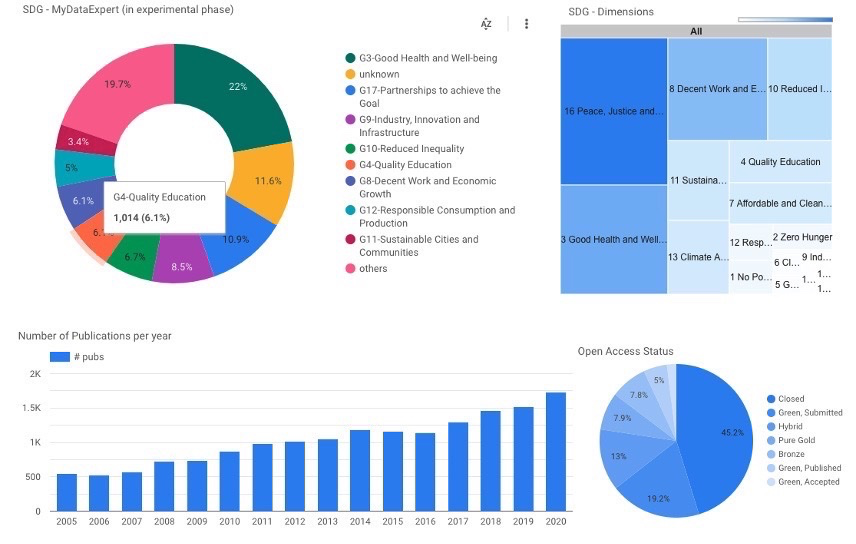 The new dashboard produced excellent results. Ten types of interactive visualizations paint a clear picture about how EUR published research aligns with SDGs, along with a list of publications. Data uncovering funding details and Fields of Research is an added plus to the university.