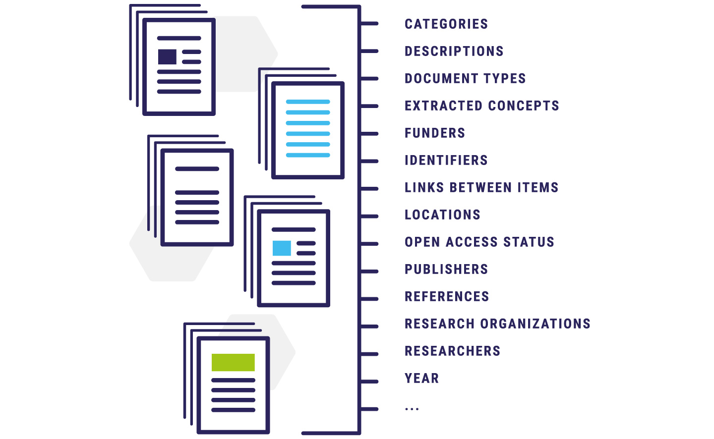 With deep indexing of more than 98 million publications and 150 million patents, Dimensions provides enriched data that makes research easier. This includes specific, disambiguated data on individual people as well as institutions, using AI-based categorization and a wide range of indicators and metrics.