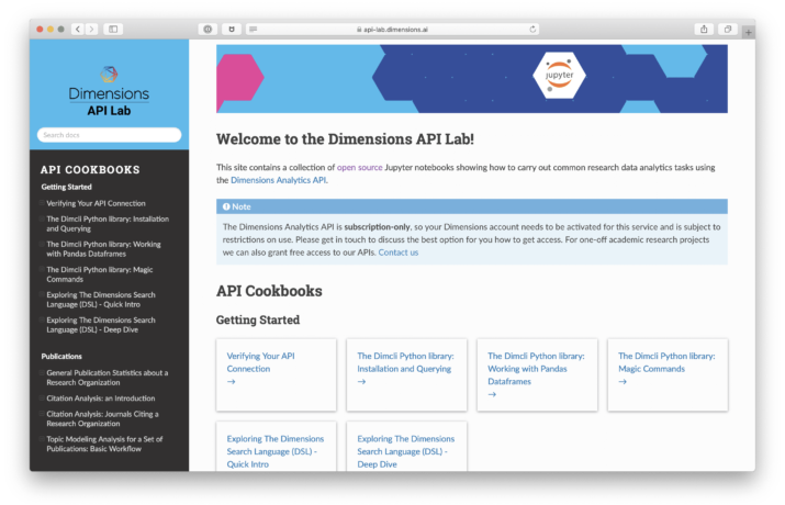 This page contains Jupyter notebooks to show how to carry out common scholarly data analytics tasks using the Dimensions Analytics API.