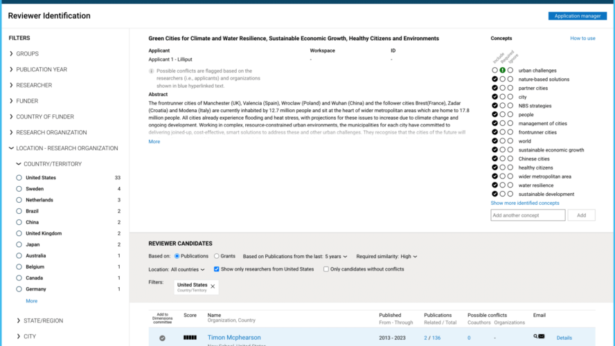 Find the right reviewers for your grant applications quickly and easily with Dimensions Reviewer Finder