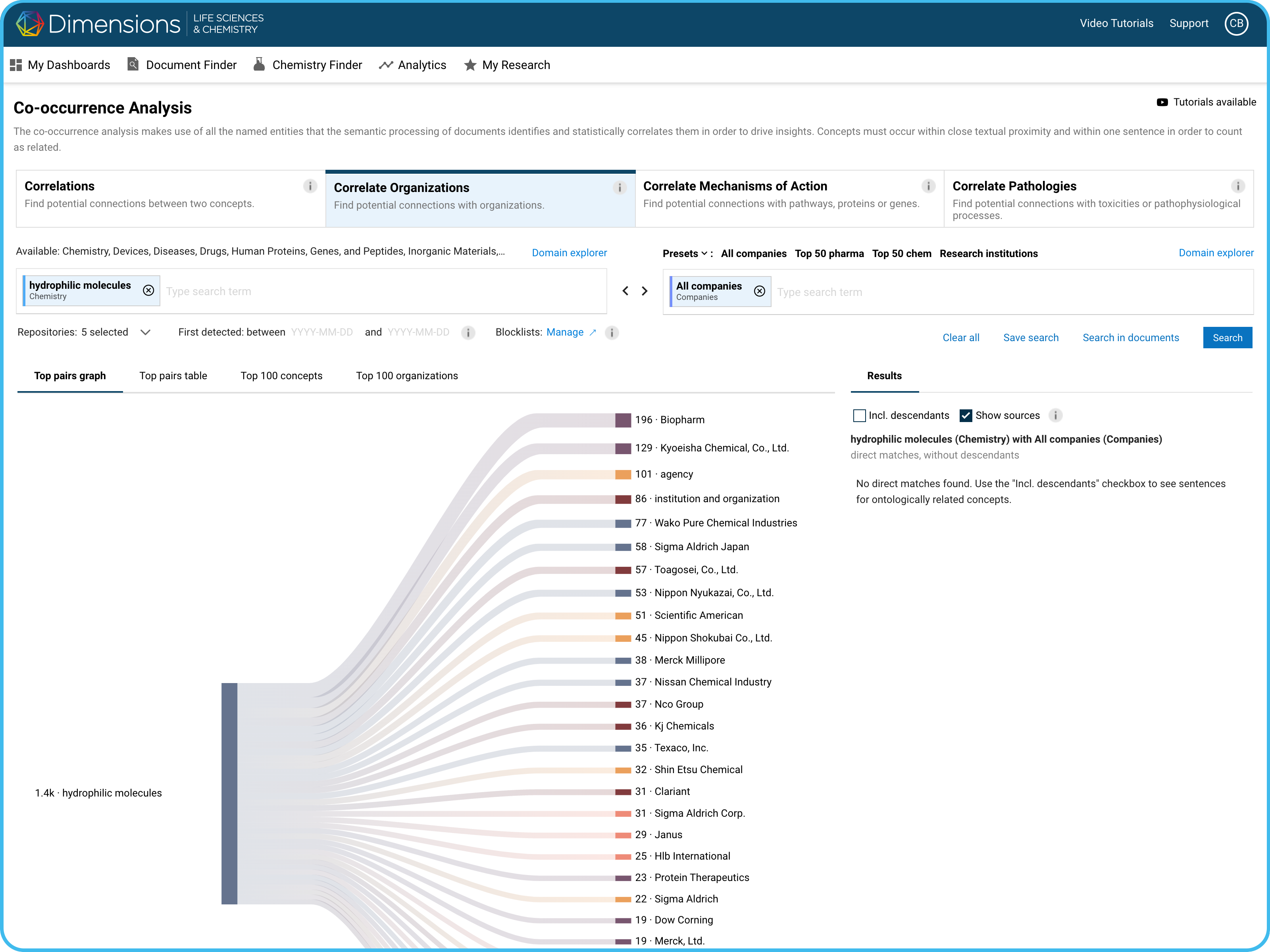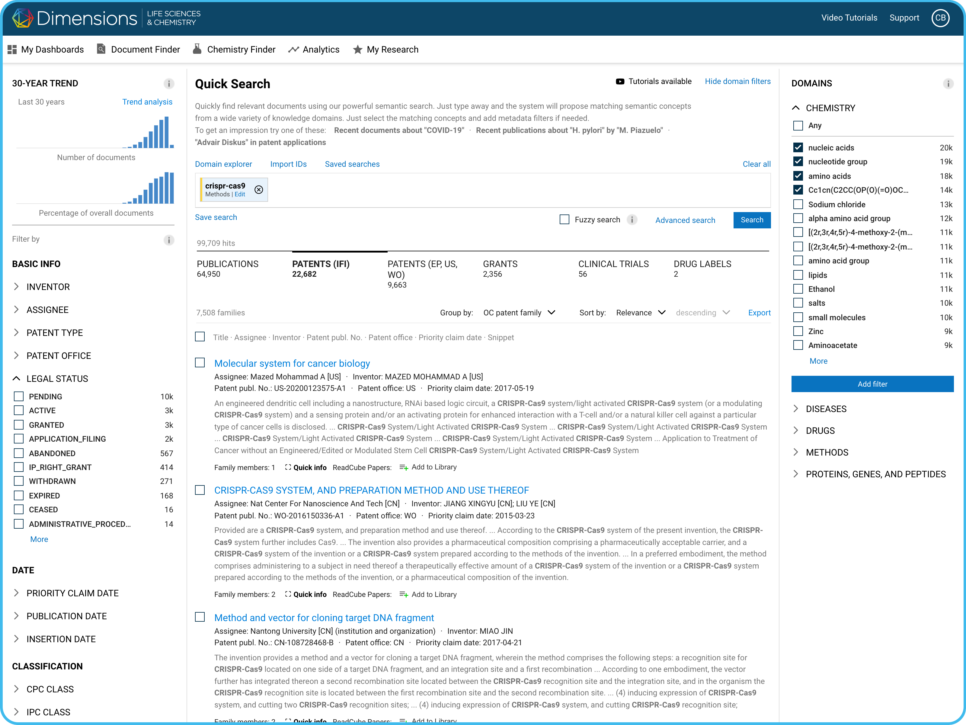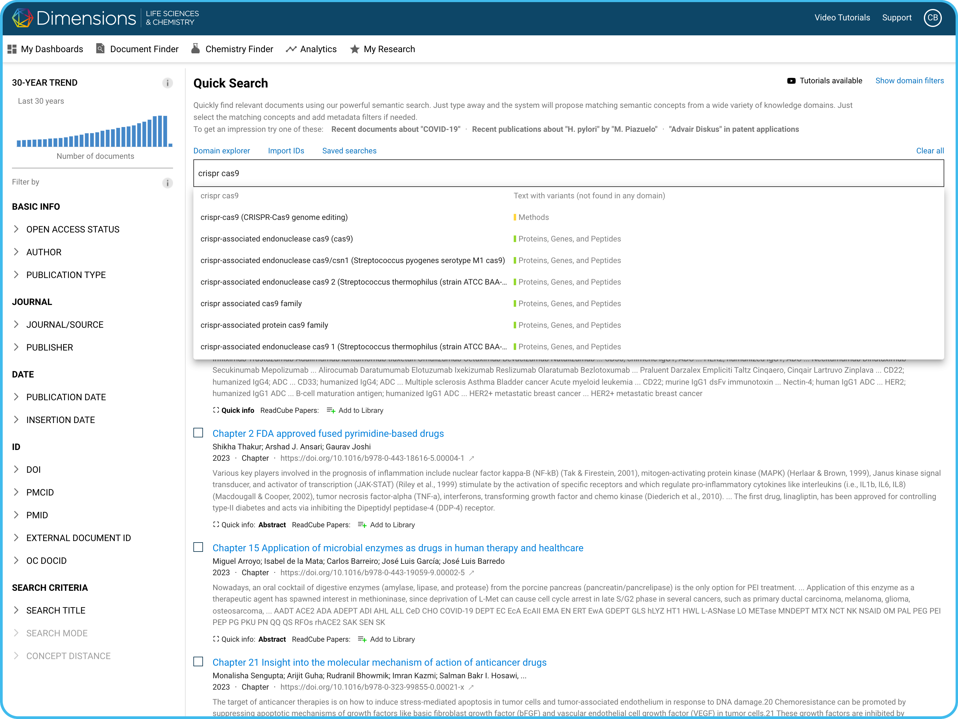 - Identify relevant documents and gain deeper insights through semantic analysis and chemistry & sequences search