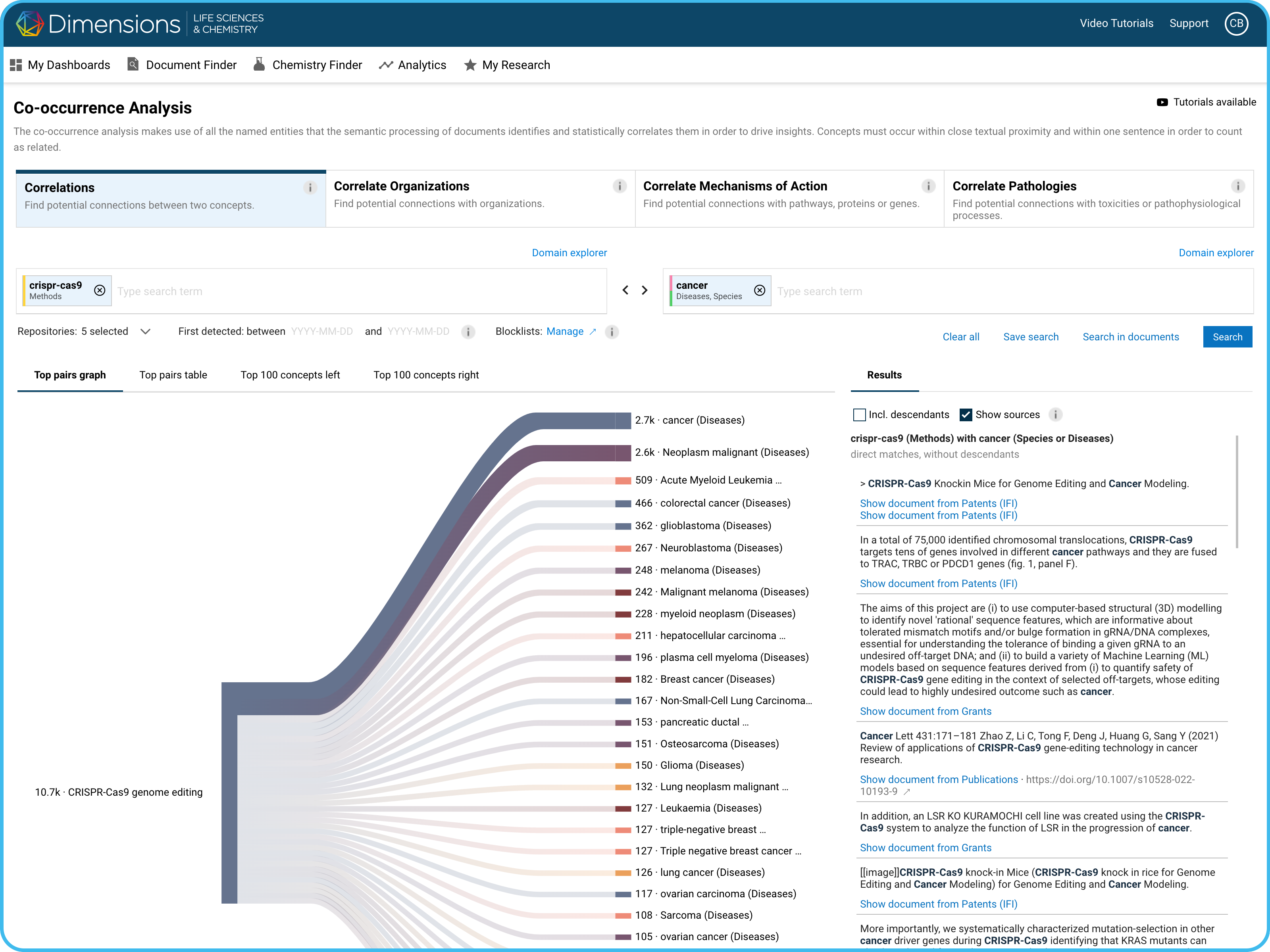 - Data derived from Dimensions’ more than 130 million publications, contextualized with linked grants, patents and clinical trials