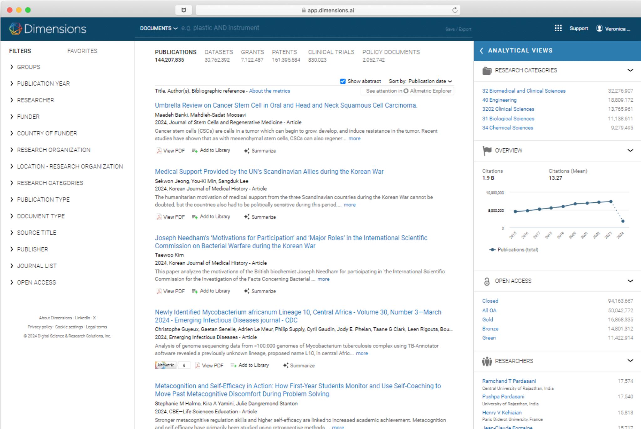 - Making the full Dimensions version available to the Research4Life community at no cost.