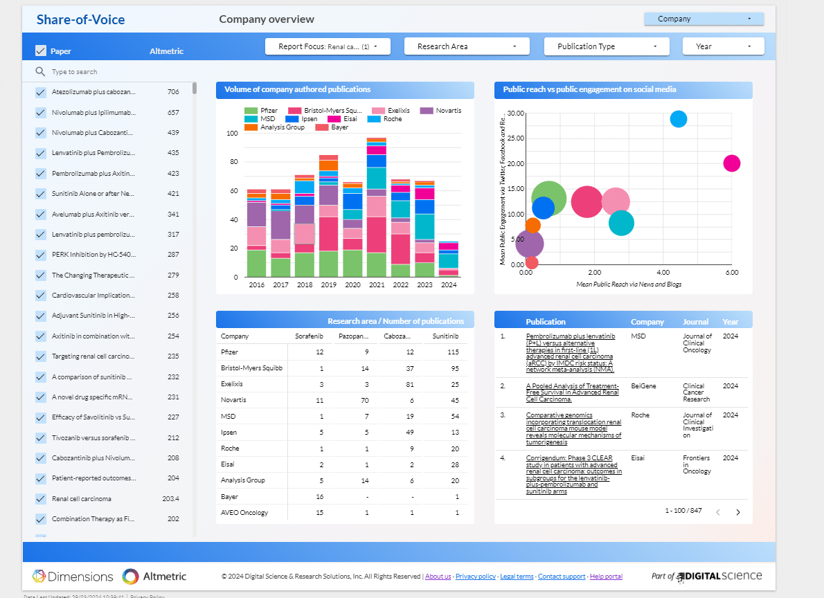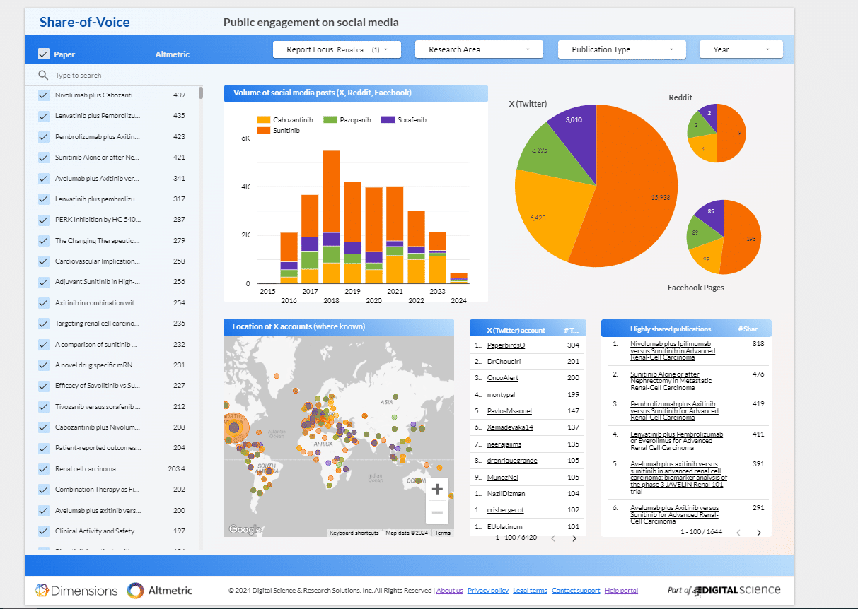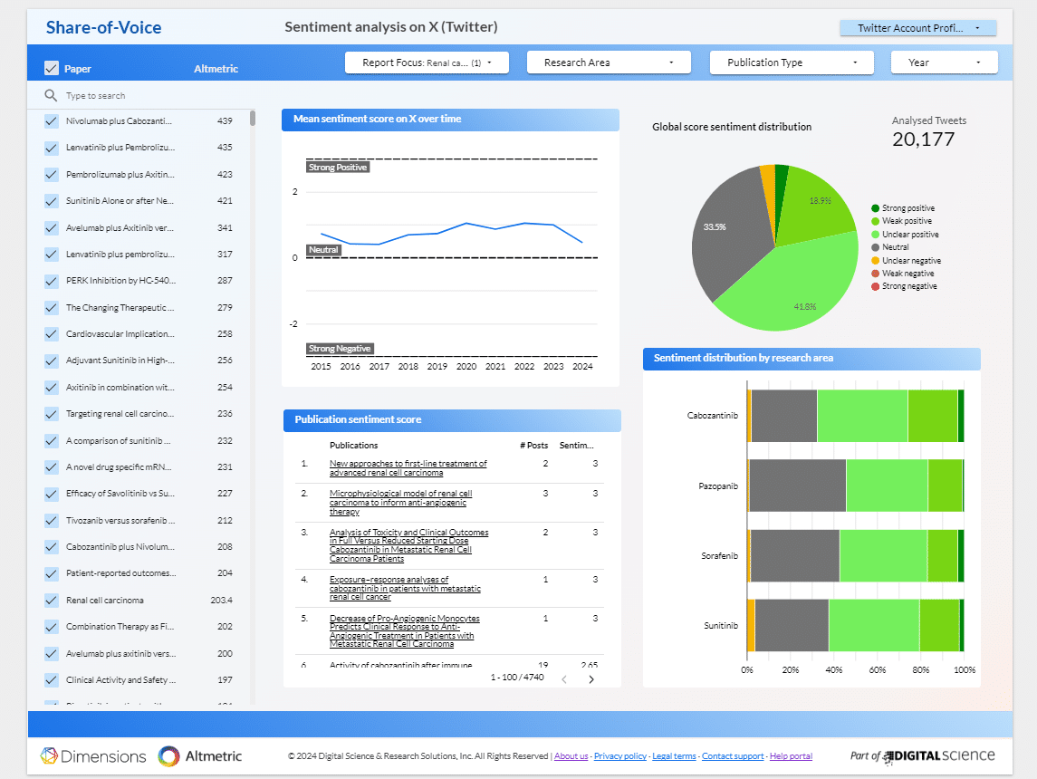 Dimensions has partnered with Altmetric to offer the Share of Voice dashboard. Visit Altmetric to find out more.