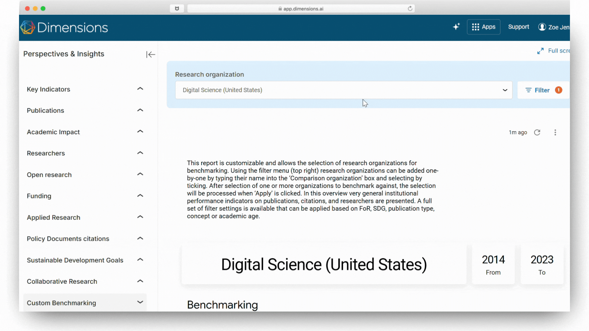 See and compare your performance, with the Dimensions Perspectives & Insights app – a clear dashboard for quick benchmarking.